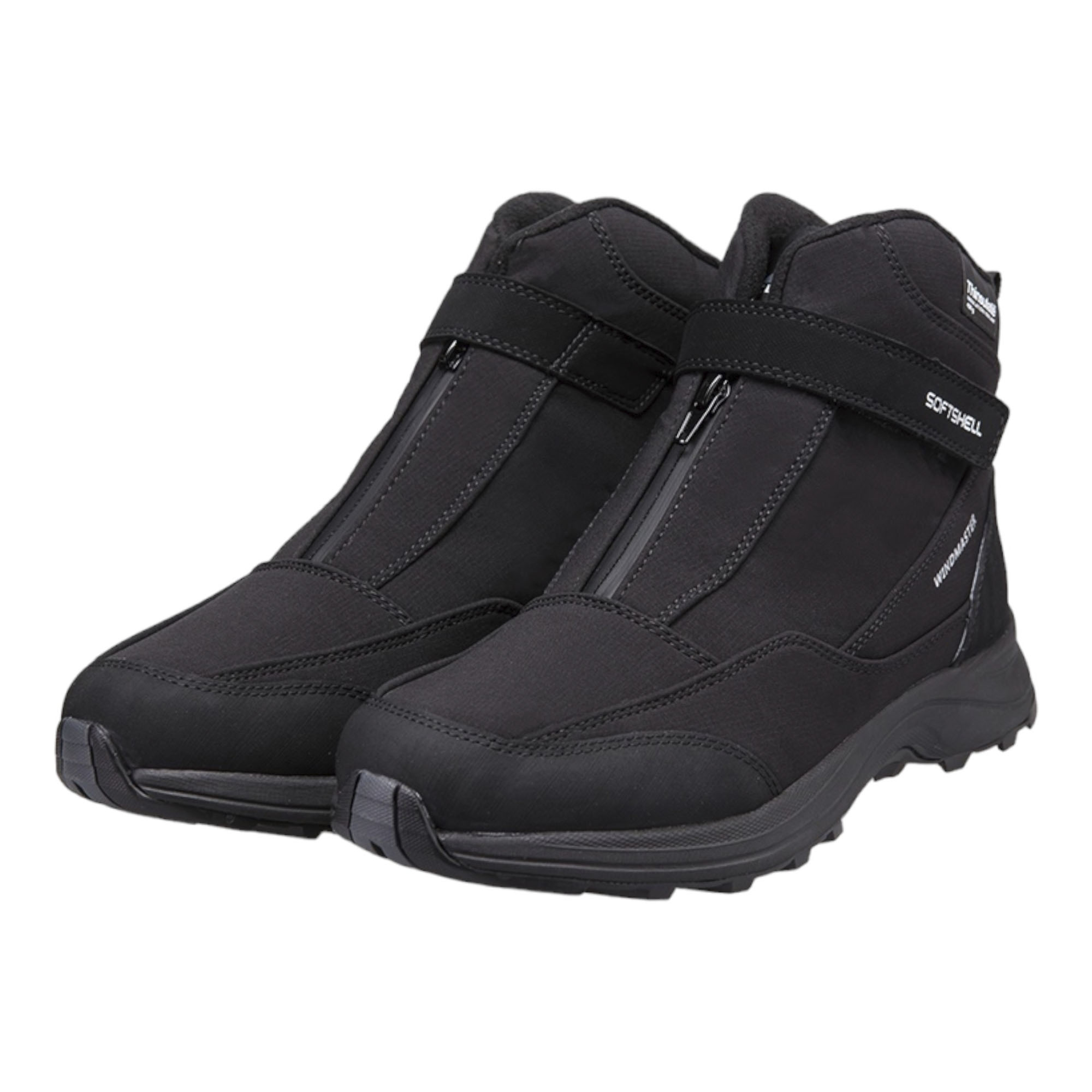Для активного отдыха и длительных походов сапоги Editex Windmaster станут отличным выбором за счёт высокой ветрозащиты и удобной компоновки без шнурков, плотно облегающая ногу. Благодаря SoftShell технологии внешнего слоя, сапоги обладают высокой гибкостью и износостойкостью, защищая ноги от попадания влаги и ветра, а прошивка из двойной строчки позволяют изделию прослужить множество зимних сезонов. Мембрана, выполненная по технологии Waterproof Windproof Breathable (WWB), обладает высокой паропроницаемостью, предотвращая образования конденсата внутри и создавая комфортный микроклимат, а за счёт микроскопических пор дополнительно предотвращает проникновение влаги и холодного воздуха. Использование синтетического утеплителя Thinsulate со скрученными полиэфирными микроволокнами наделяет сапоги эффективными теплоизолирующими свойствами, удерживая в порах утеплителя тёплый воздух, позволяя комфортно чувствовать даже при низких температурах. Для удержания стопы ног и их дополнительной вентиляции изделие оборудовано съёмными стельками OrthoLite со специальной обработкой предотвращающая образование микробов и неприятного запаха, а небольшая амортизация стелек позволит с комфортом преодолевать препятствия. Промежуточная подошва EVA распределяет нагрузку при ходьбе, а основная подошва Ultra Slip Protection (USP) с развитым рисунком протектора обеспечивает надёжное сцепление с поверхностью, не теряя своих эластичных свойств даже в условиях низких температур. Надёжную фиксацию на ноге обеспечивает замок «велкро» и крепкая молния, а дополнительная петля сзади позволяет с комфортом надевать обувь. Резиновые усилители носка и пяток предотвращают механические повреждения при ударах об неровности поверхности, защищая ноги владельца. Износостойкие материалы позволяют сапогам не только выдерживать длительное ношение, но и множественную стирку, сохраняя свойства и форму. Аккуратный дизайн благодаря отсутствию шнуровки позволит стильно выглядеть не только в походах, но и при повседневной ходьбе по городу, а за счёт чёрного цвета одежда тёмных тонов легко сочетается с сапогами.Характеристики: