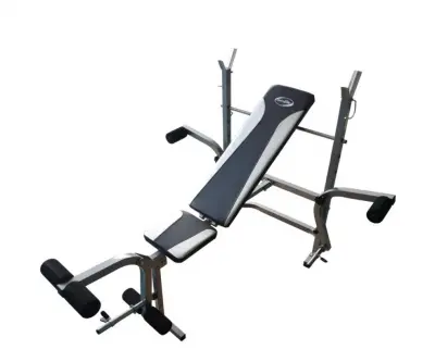 Бенч – один из наиболее популярных тренажеров, которые имеют большую универсальность. Бенч легко разместить дома. Скамья подойдет для занятий спортом дома - на ней можно делать жим лежа, упражнения на ноги, такие как сгибание-разгибание, а также баттерфляй и другие упражнений на спину и грудные мышцы. Профиль конструкции имеет высокую прочность. Мягкие валики под ноги и прочная спинка предохранят от нежелательных ударов и травм во время тренировки. Спинка, регулируемая, и имеет три положения. Сидение достаточно комфортное – набивное. Максимальный вес пользователя 100 килограммов.