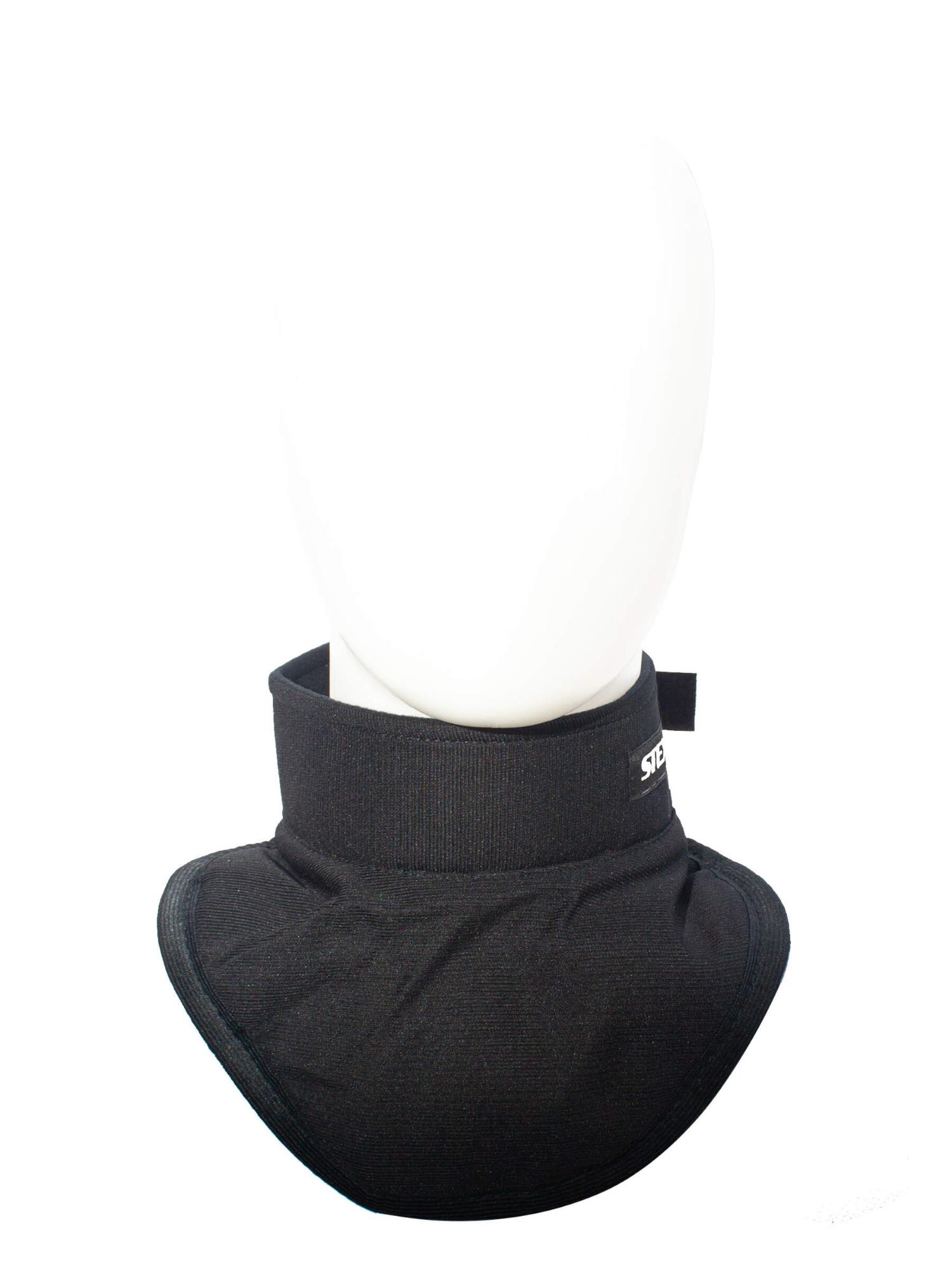 Защита выполнена из плотного полиэстера и изолона. Полностью прикрывает шею, горло, и ключицы хоккеиста. Помогает избегать травм, смягчая удар. Внутренняя подкладка из изолона, отлично поглощает влагу, предотвращая запотевание. Размер регулируется застежкой - липучкой.